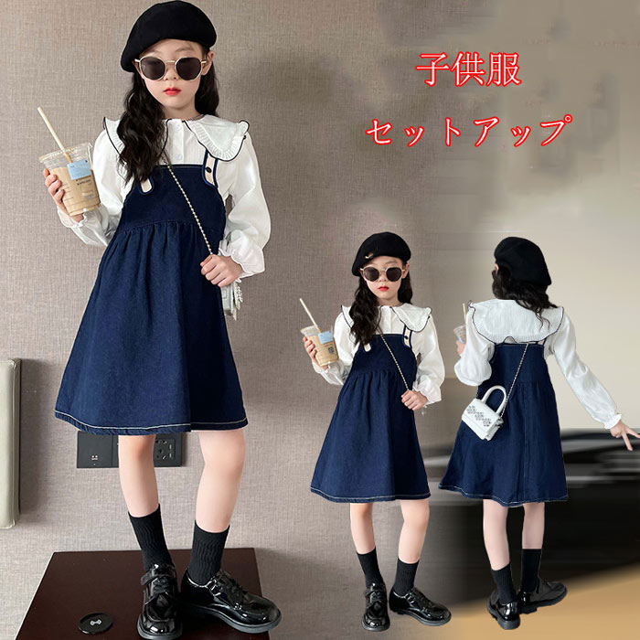 子供服女の子 長袖 トップス デニム スカート セットアップ フリル キッズ ベビー ジュニア 韓国子供服 110 120 130 140 150 160