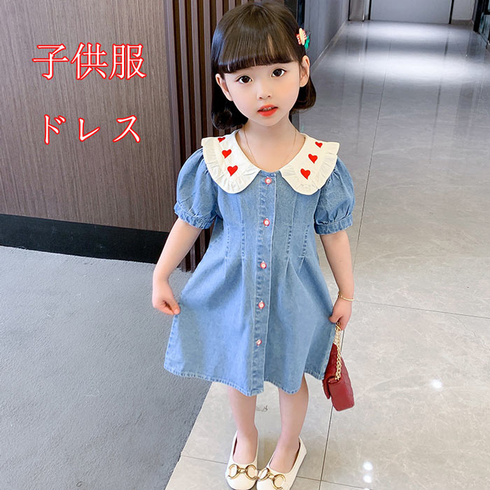 子ども服ドレス キッズ ワンピース 子供 ドレス 韓国 こども服 ワンピース半袖 ドレス フデニム ジュニア 発表会 演奏会80 90 100 110 120 130 140
