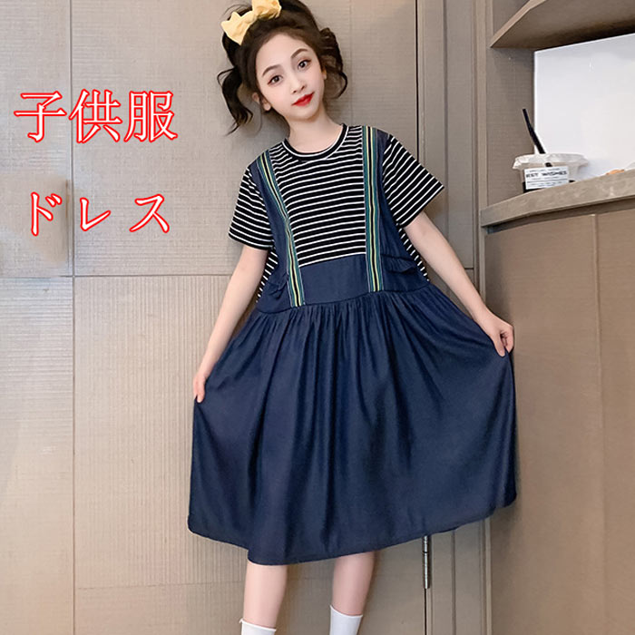 子ども服ドレス キッズ ワンピース 子供 ドレス 韓国 こども服 ワンピース半袖 ドレス フデニム ジュニア 発表会 演奏会80 90 100 110 120 130