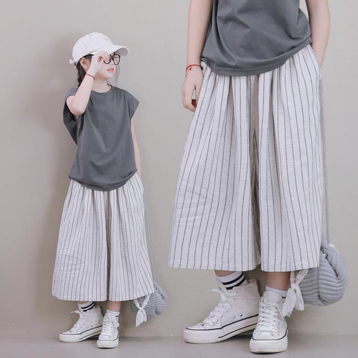 韓国子供服 上下セット 2点セット トップス 半袖 Tシャツ シフォン ショートパンツ ワイドパンツ 七分ズボン