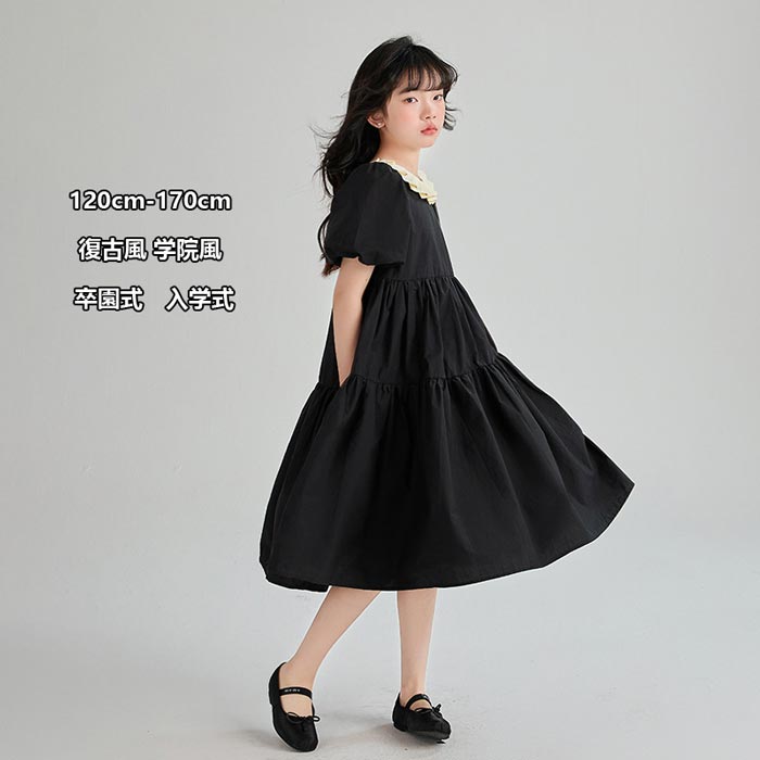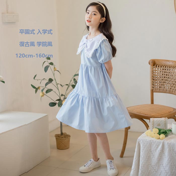 子供 フォーマルワンピ 女の子 夏半袖 ワンピ 韓国 子供服 ワンピース お出かけ着 結婚式 パーティー 無地シンプル シャツ