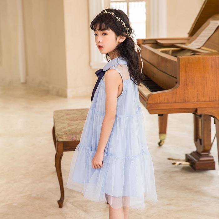 女の子ブルー半袖 ワンピース ファッション感 ワンピ 姉妹 七五三キッズ ドレス卒業式 入園式キッズ ベビー マタニティ キッズファッション ワンピース