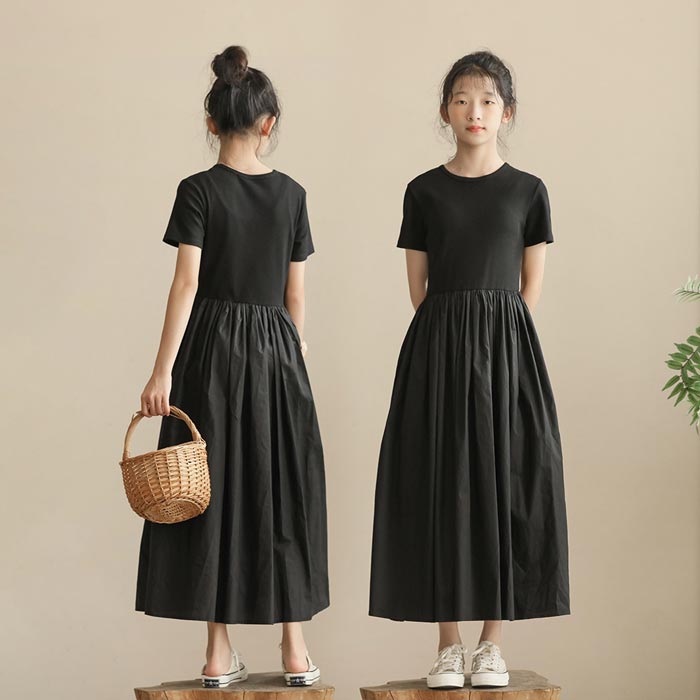 子供 フォーマルワンピ 女の子 夏半袖 ワンピ 韓国 子供服 ワンピース お出かけ着 結婚式 パーティー 無地シンプル Tシャツ