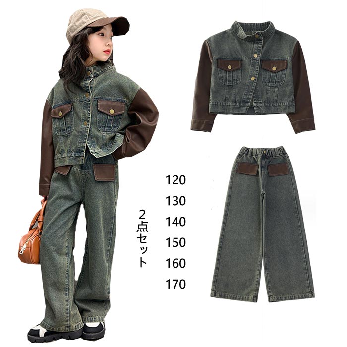 キッズダンス衣装 セットアップ ヒップ 春秋 女の子デニムジャケット+ジーンズ 2点セット長袖 デニムアウター 120cm130cm140cm150cm160cm170cm