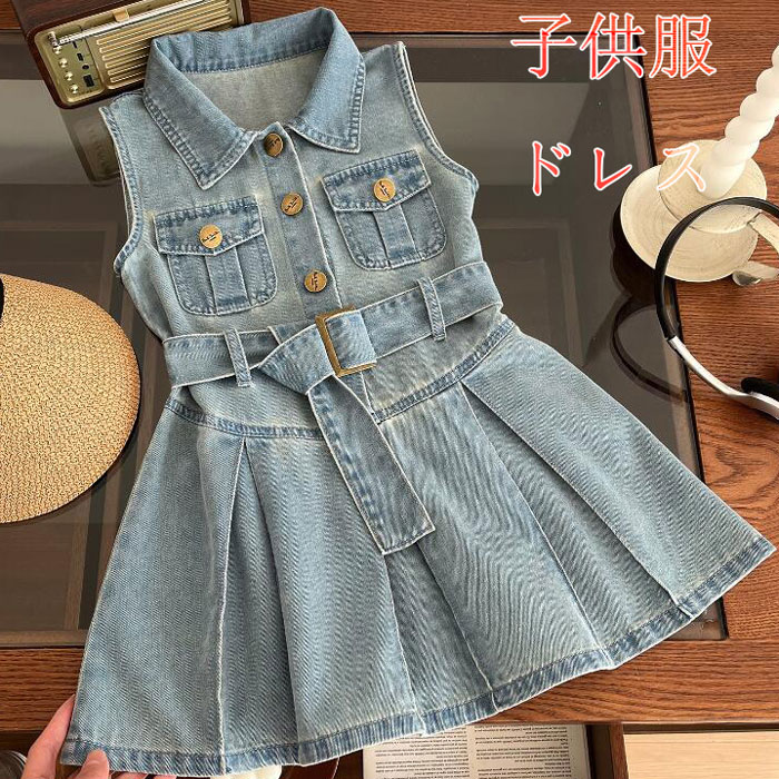 子供ワンピース キッズドレス 9cm 100cm 110cm 120cm 130cm 140cm 150cm ストラップドレス入学式 女の子 卒園式 女の子 卒服 女の子 入園式 子ども デニムワンピ
