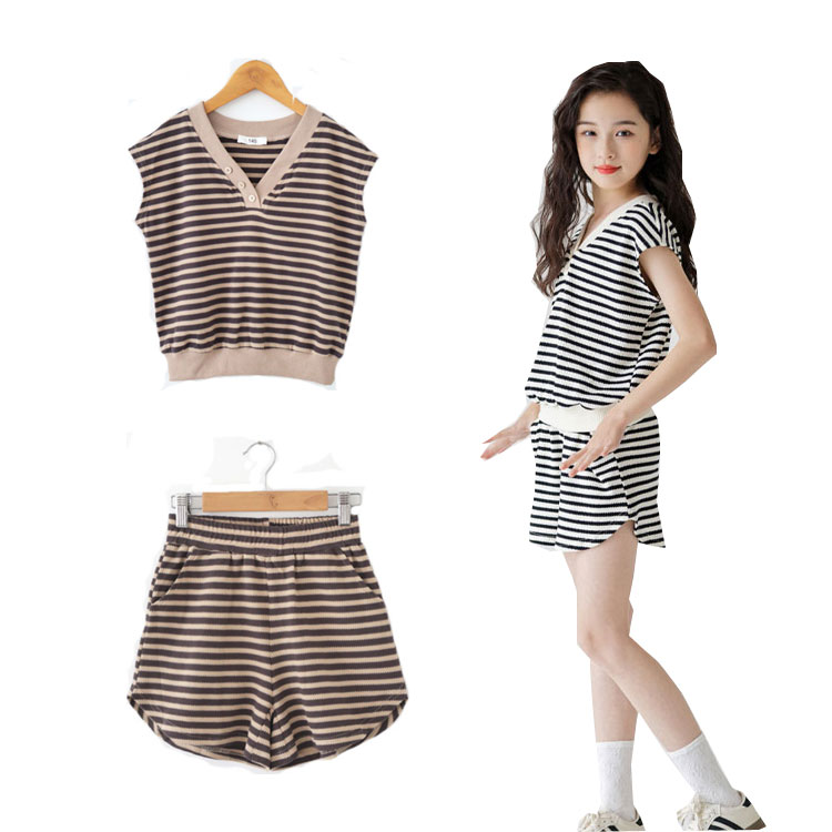 キッズ セットアップ 130 140 150 160 165 韓国子供服 2点セット 女の子ボーダー柄 半袖シャツ夏 ショートパンツ