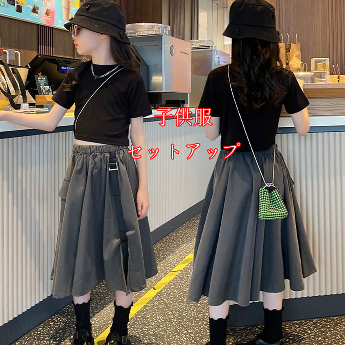 韓国 子供服 セットアップ 学生 女の子 半袖 Tシャツ+スカート子ども服 上下セット 120 130 140 150 160 170cm