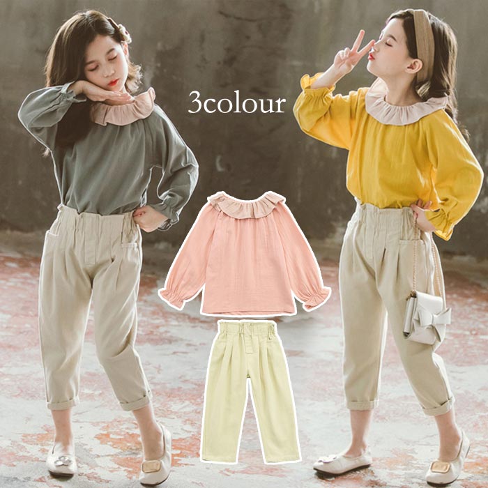 キッズ セットアップ 100cm 110cm 120cm 130cm 140cm 150cm 160cm 韓国子供服 2点セット 女の子 カジュアル ナチュラル 春秋 トップス+ズボン