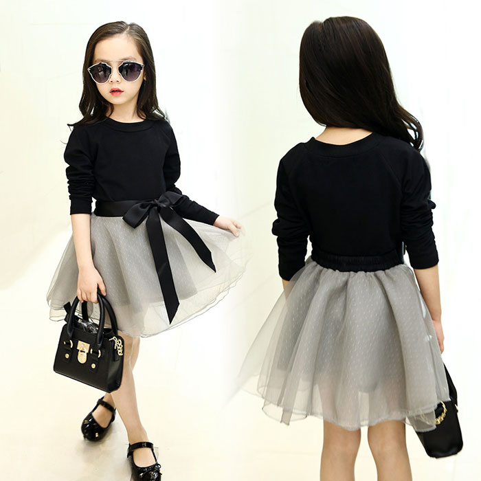 チュール ワンピース 女の子 ワンピ長袖 冬 秋 春 水玉リボン リブチュールスカート カットソー フォーマルパーティー 韓国子供服