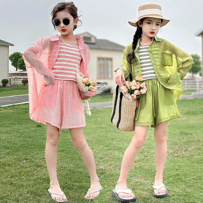 子供 長袖アウター uvカット パーカー キッズ 女の子 夏 UVカット アウターTシャツ ショートパンツ3点セット