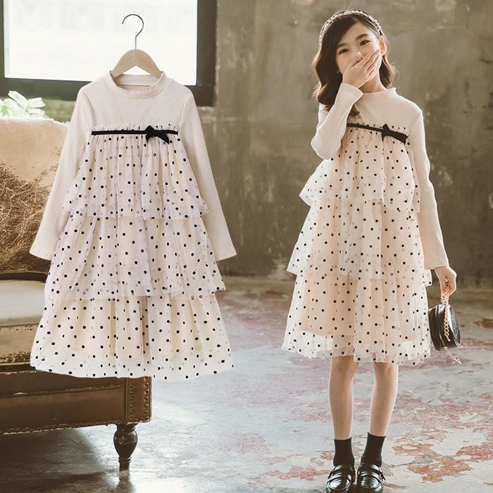 子供ドレス ワンピース 長袖 水玉柄ドレス 入学式 子供 女の子 卒園式 フォーマル 女児 長袖 娘 入園式 卒業式 結婚式 可愛い110120130140150160