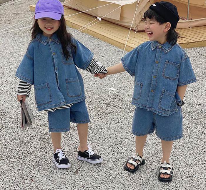 キッズ デニムシャツキッズ ショートパンツ ジーンズ 上下セット 赤ちゃん 韓国子供服 セットアップ
