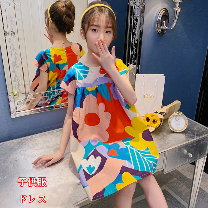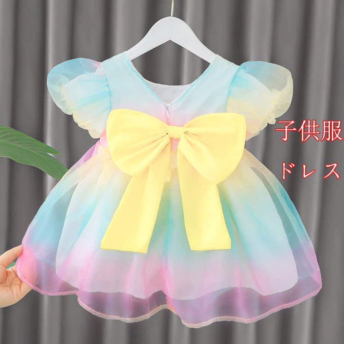 夏 ワンピ 可愛い 子供ワンピ 半袖 リボン付き ワンピース 卒園式 入学式 卒業式 演出 小学校80cm 90cm 100cm 110cm 120cm