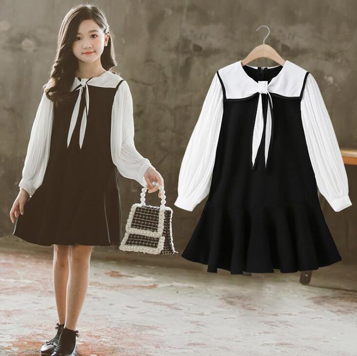 韓国子供服 ドレス 学院風 ワンピース ジュニア オシャレ 長袖 ワンピースキッズ ベビー マタニティ キッズファッション ワンピース