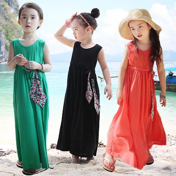親子ペア ワンピース 子供服 ノースリーブ ワンピース マキシ丈 無地 ワンピース 女の子 親子服 キッズ 夏 海 ナチュラル ビーチ ワンピース リゾート ハワイ