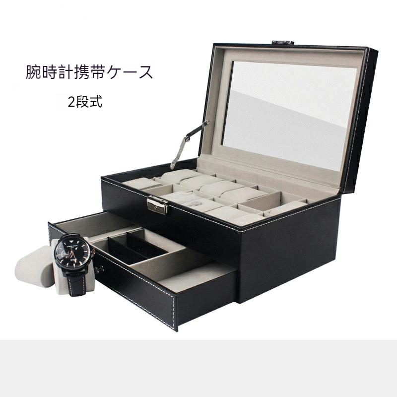 ジュエリーボックス 2段式 アクセサリー腕時計携帯ケース 12本用 収納 ボックス 高級 ウォッチ コレクションケース PUレザー製 c-shouna-11057-gg