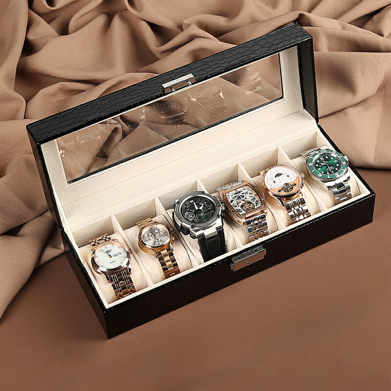 腕時計携帯ケース 6本用 収納 ボックス ウォッチ収納 コレクションケース レザー製 ジュエリーボックス アクセサリー --11059-