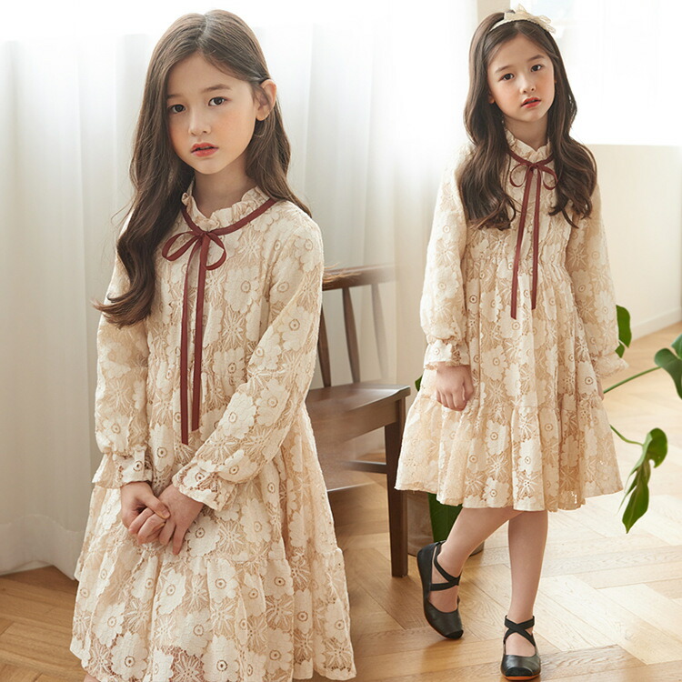ワンピース 長袖 レース ドレス 女の子 プリンセスドレス ジュニア キッズ 卒園式 フォーマル ワンピース イギリス風 女の子 ドレス ワンピース ベビー 入学式 子供 子供服 ドレス 日常 発表会