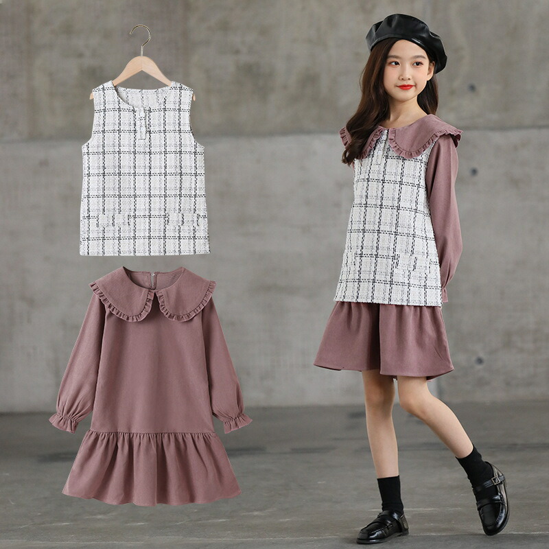 子供ドレス2点セット ワンピース 長袖 女の子 ドレス ワンピース ベビー 入学式 子供 ドレス キッズ 卒園式 フォーマル ワンピース イギリス風 子供服 ドレス 女の子 プリンセスドレス ジュニア