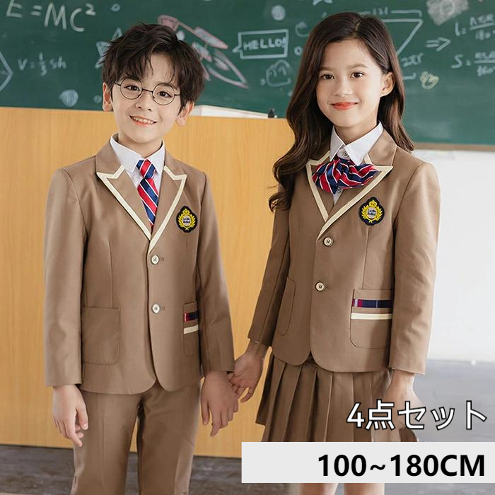 英式スーツ 子供スーツ 卒業式 男の子 スーツ一式 セットアップ 卒園 入園 大きいサイズ 小学生 タキシード 入学式 結婚式 発表会 演奏会 女の子 シャツ付き キッズフォーマル 子ども 七五三 長