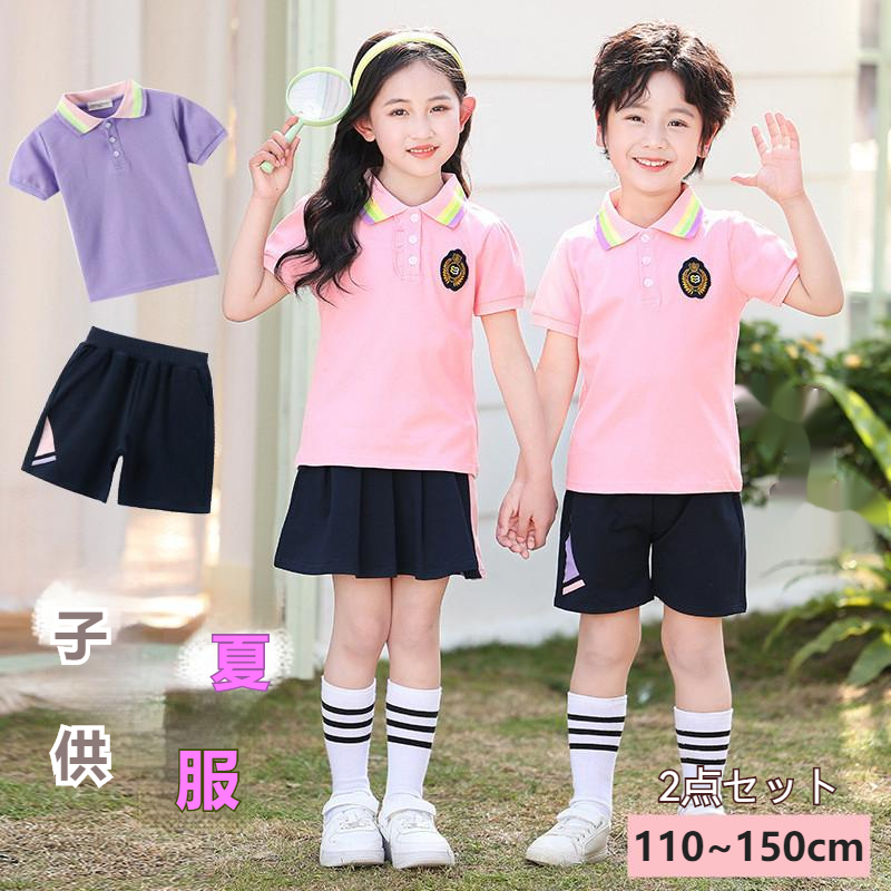 子供スーツ 男の子 女の子 ショート丈 夏 制服 キッズ ジュニア 普段着 幼稚園 小学生 入学式 卒業式 運動会 お受験 上下セット 半袖シャツ Polo スカート パンツ 運動着 スポーツ 子ども