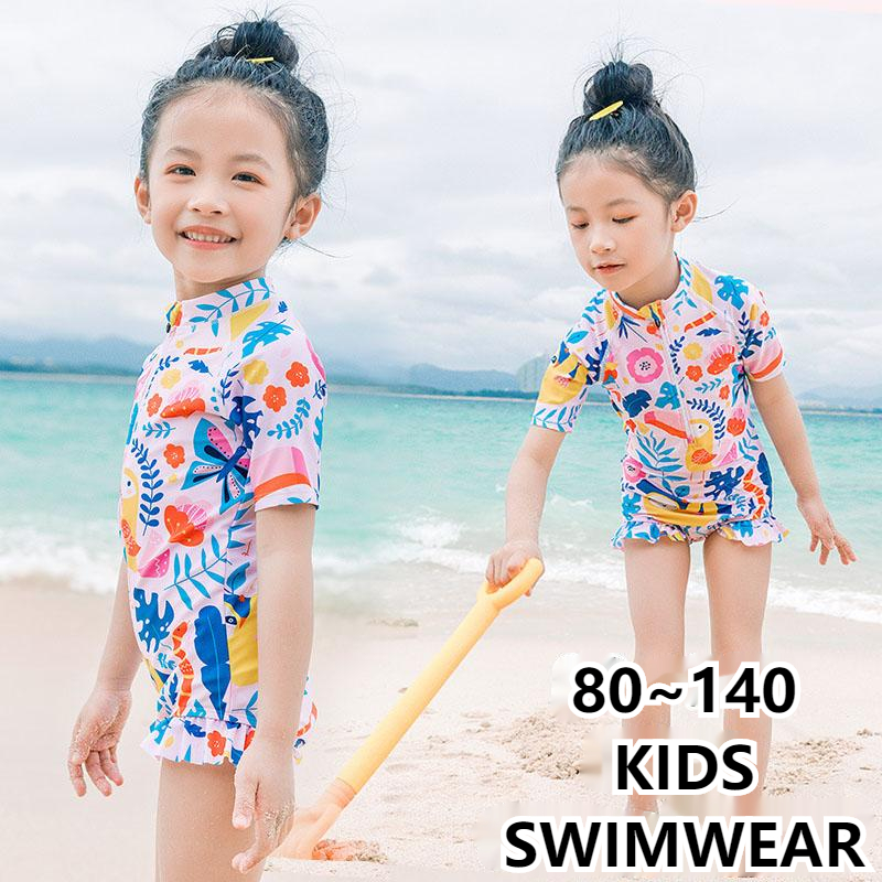 花柄 水着 女の子 半袖 ベビー水着 女児 かわいい 赤ちゃん80 90 100 110 120 130 140 150cm レッスン スイムウェア ジュニアまで ワンピース 子供用 こども みずぎ