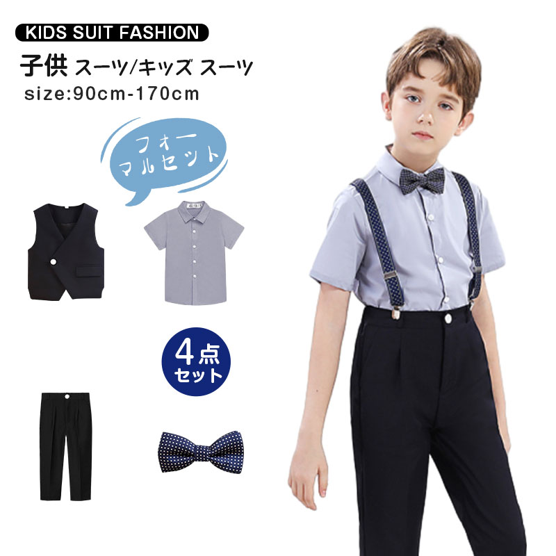 子供スーツ かっこいいボーイズにぴったりのフォーマル半袖男の子スーツキッズ ベビー マタニティ キッズファッション スーツ カジュアルセットアップ スーツ