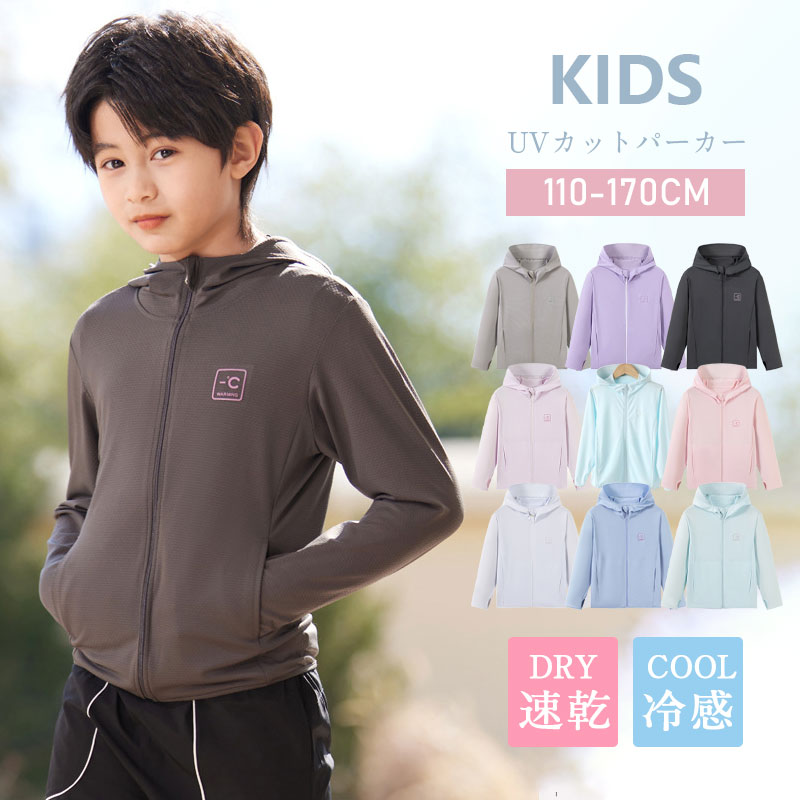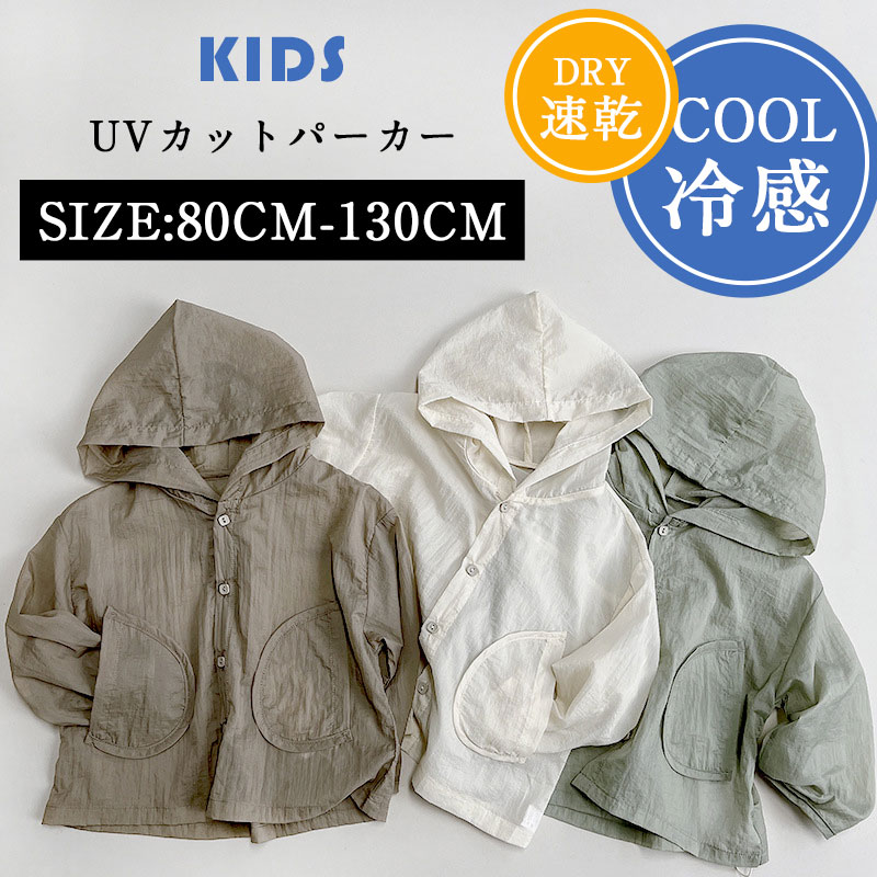 暑い季節にもさらりと心地よく着られる キッズ UVカット フード付き 日焼け防止服 紫外線対策キッズ ベビー マタニティ キッズファッション トップス パーカー