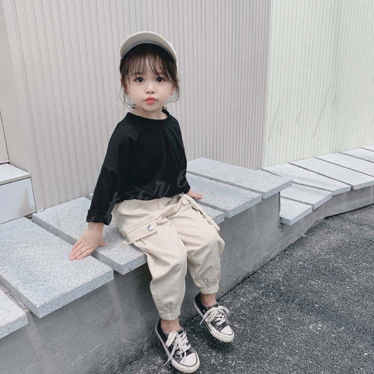 子ども服 子供服 女の子 男の子 セットアップ カジュアル ナチュラル 長袖 Tシャツ ロング丈 サルエルパンツ 無地 シンプル ジュニア かっこいい 上下セット