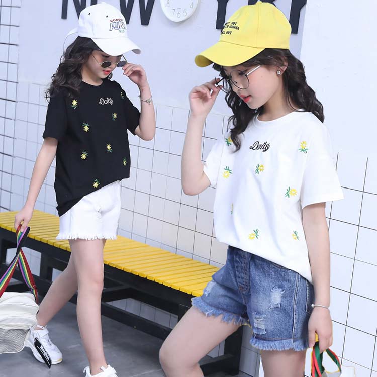セットアップ キッズ 女の子 レディース カジュアル 夏 韓国 大きいサイズ 半袖 おしゃれ Tシャツ 花柄 総柄 デニム 短パン フリンジ 2点セット 普段着 通学