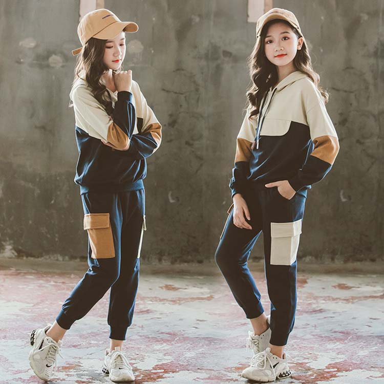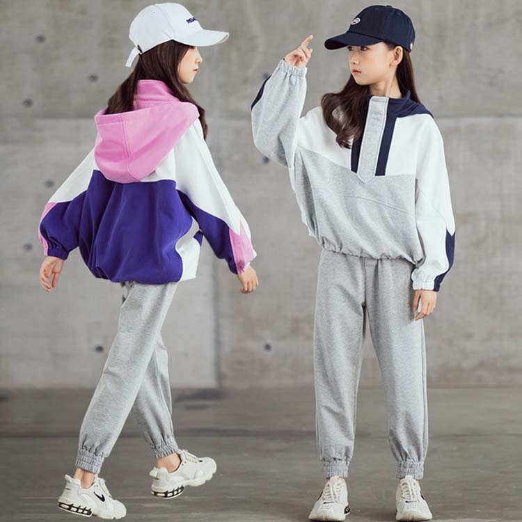 スポーツウェア キッズ 女の子 ジュニア レディース ジャージ セット 長袖 パーカー フード付き 混色 長ズボン ポケットあり スウェット 上下 2点セット 通学 運動着 部屋着