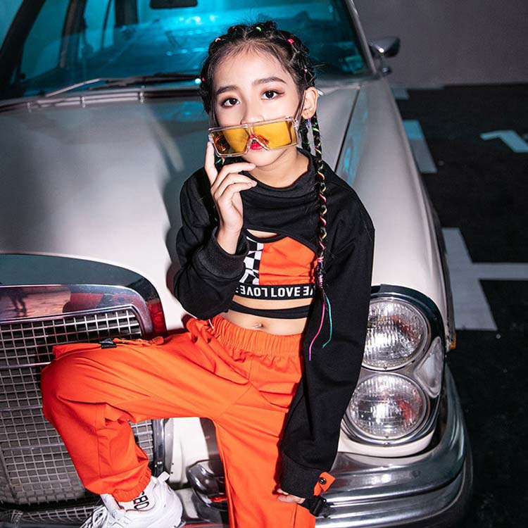 ヒップホップ 衣装 ファッション 長袖 パーカー ショートパーカー タンクトップ へそ出し ロング丈 パンツ へそ出し キッズダンス衣装 ダンス レッスン 練習着 ストリート ヒップホップ