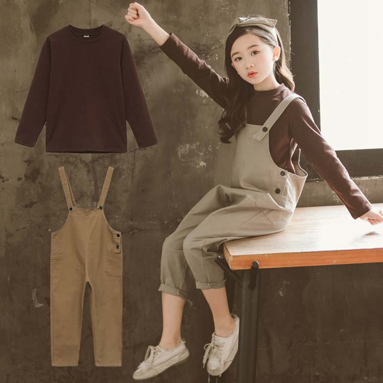 セットアップ レディース キッズ カジュアル おしゃれ 長袖 Tシャツ 七分丈 オーバーオール 上下 2点セット 無地 子ども服 子供服 女の子 カジュアル ナチュラル オールインワン