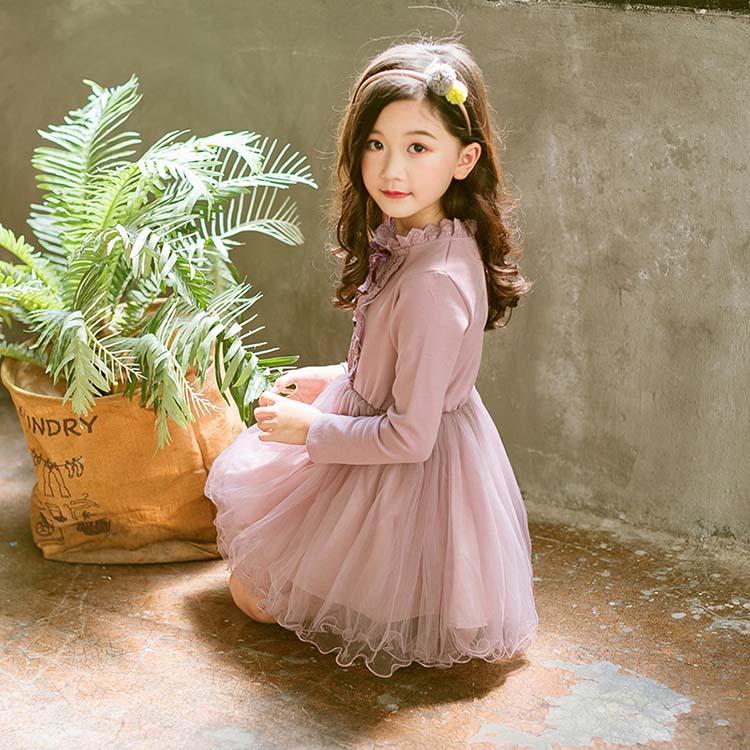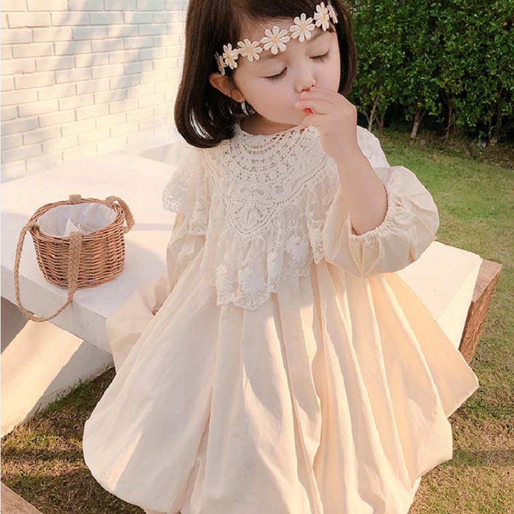 キッズ ワンピース 女の子 おしゃれ 長袖 秋着 韓国こども服 シンプル キッズワンピース レース 切り替えワンピース 可愛い 子供ドレス ガールズ こども着