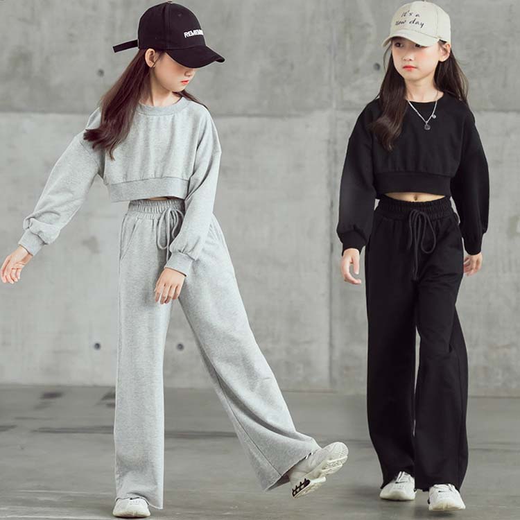 韓国子供服 女の子 ジャージセット キッズ セットアップ 長袖 2点セット ダンス衣装 ヒップホップ セットアップ パンツ トップス ロングパンツ ワイドパンツ