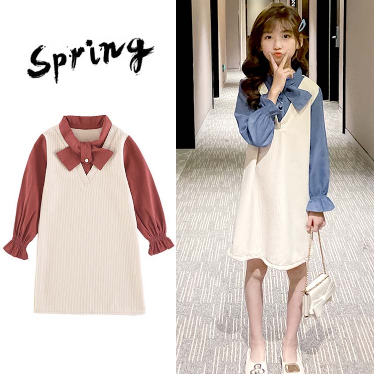 韓国子供服 キッズ ワンピース 女の子 長袖 重ね着風 新作 子どもワンピース フォーマル 通学 可愛い 春秋 入学式 こどもワンピース シャツ ワンピース