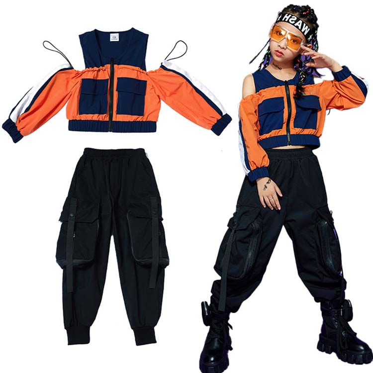 ヒップホップ 衣装 ファッション トップス 長袖 肩出し サルエルパンツ キッズダンス衣装 ダンス衣装 キッズ トップス ロンク丈 パンツ ダンスウェア レディース おしゃれ ジュニア