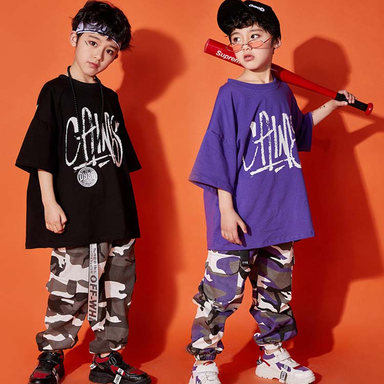 ヒップホップ 衣装 ファッション キッズ 大人 半袖 Tシャツ サルエルパンツ ダンス衣装 キッズ トップス パンツ 上下 オーバーサイズ 半袖Tシャツ 迷彩 長ズボン 黒 紫 ストリート