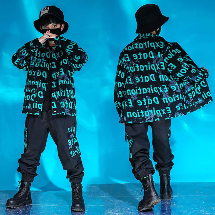 キッズダンス衣装 ダンス衣装 キッズ キッズ トップス パンツ 男の子 女の子 デニム シャツ ロング丈 ズボン 文字柄 総柄 ヒップホップ 衣装 ファッション ジュニア ゆったり ダンス