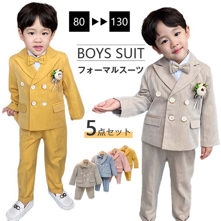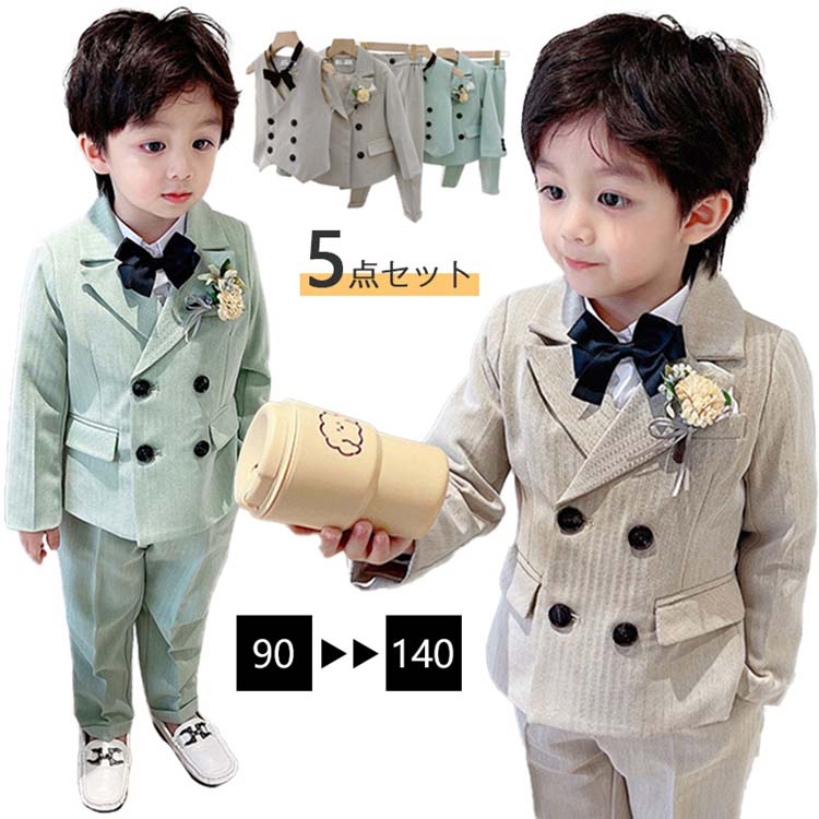 子供スーツ 5点セット 男の子 礼服 スーツ子供服 長袖 フォーマル 赤ちゃん ベビー スーツ 上下セット キッズスーツ ジャケット ベスト パンツ プローチ 蝶ネクタイ フォーマルスーツ