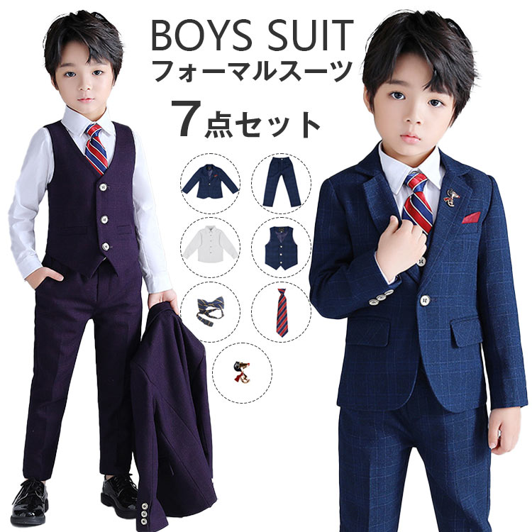 フォーマル スーツ 男の子 上下セット 7点セット 子供服 男の子スーツ 子供 キッズ 入園式 セットアップ 卒業式 七五三 子供スーツ 男の子 お宮参り 初節句