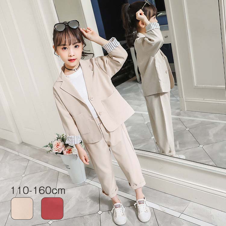 セットアップ 女の子 キッズ 2点セット 春秋 パンツ 長袖 長ズボン スーツセット ゆったり リゾート こども 可愛い 卒園式 入学式 テーラードジャケット ジュニア ロングパンツ