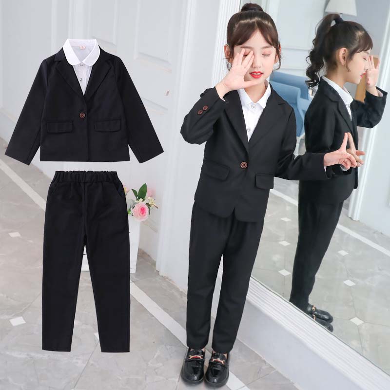 入学式 子供服 女の子 セットアップ 秋 無地 シンプル 簡単 長袖 春 秋 イギリス風 結婚式 親族 表彰式 フォーマルスーツ 女の子 こども 白 黒 2色選べる ジュニア