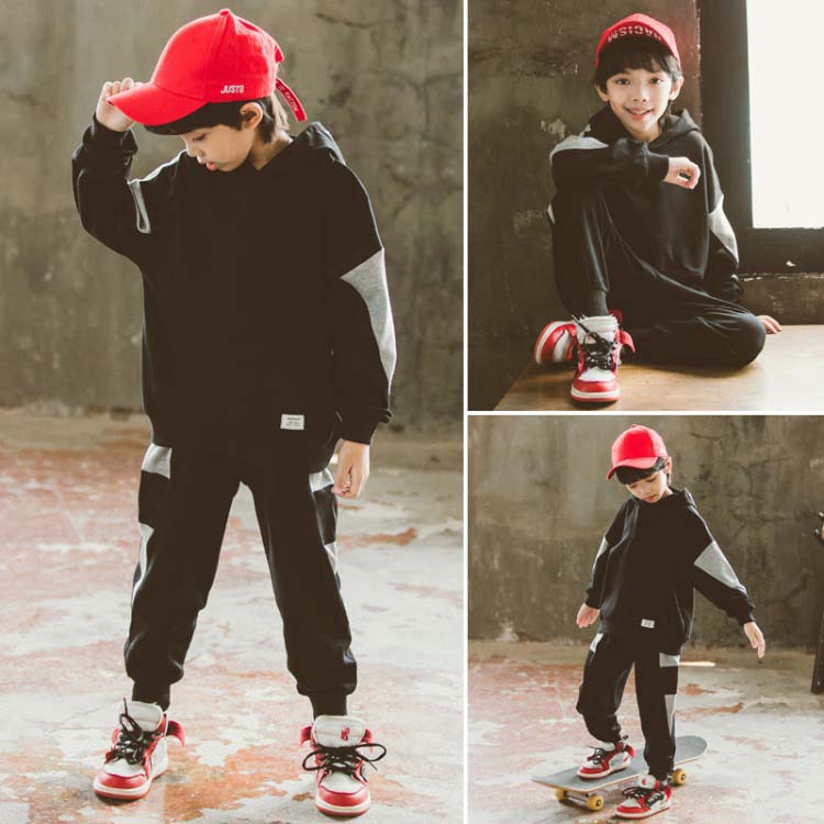 スポーツウェア メンズ ジュニア キッズ セット 子供服 子ども服 男の子 セットアップ スウェット 長袖 パーカー フード付き 長ズボン 上下セット 2点セット 黒 運動着