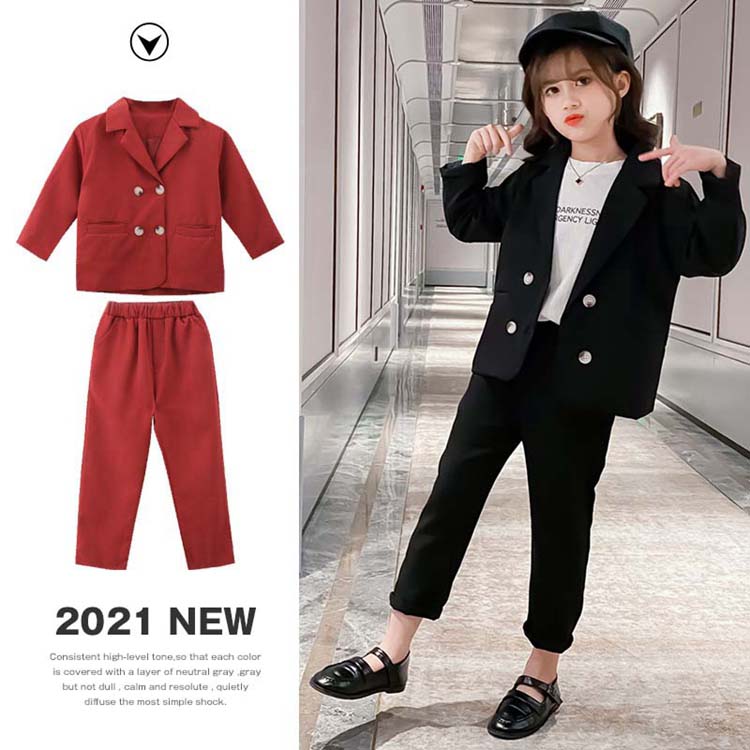 入学式 子供服 女の子 セットアップ 春秋 パンツスーツ 長ズボン ロング丈 パンツ スーツ ジャケット 無地 レッド ブラック フォーマル 子供 スーツ 結婚式 親族 表彰式