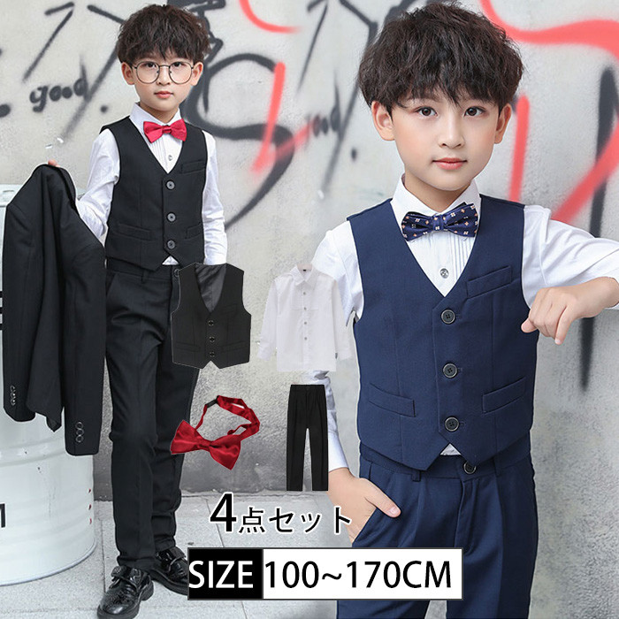 子供服フォーマルスーツ 男の子 キッズスーツ 子供スーツ セットアップ 七五三 発表会 演奏会 入学式 卒業式 入園式 男の子スーツ 4点セット