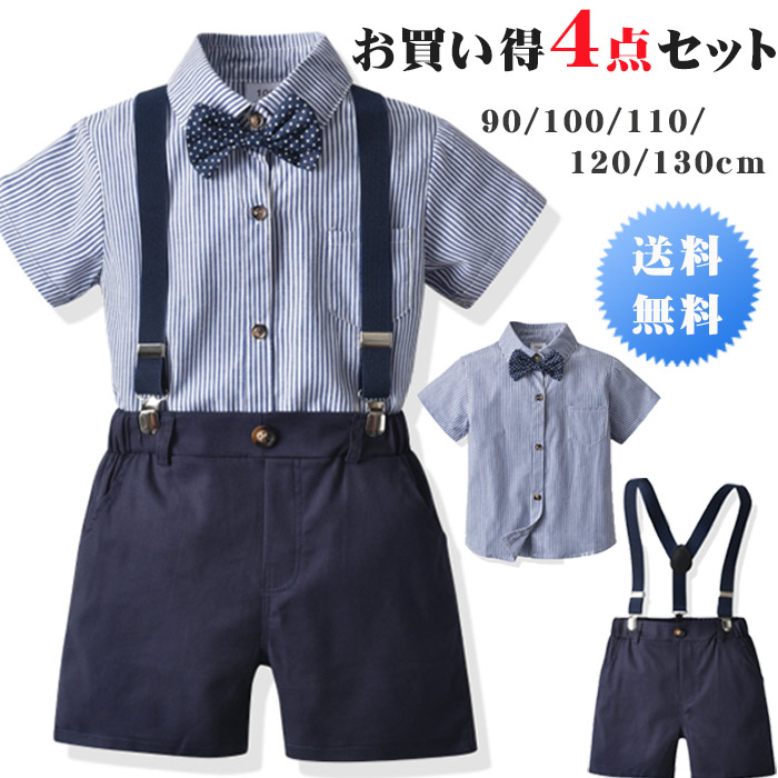 ベビー服 子供 フォーマル スーツ 七五三 スーツ 入園式 スーツ お宮参り スーツ 半袖かっこいい フォーマルスーツ春 夏 ストライブ柄 おしゃれ 蝶ネクタイ付き 90- 130cm