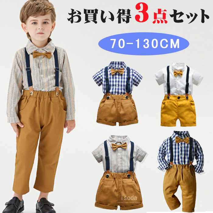 子供服 男の子 スーツ 夏 サスペンダー セットアップ コットン 90、100、110、120、130、140 かわいい 春 夏 上下セット かっこいいオシャレ