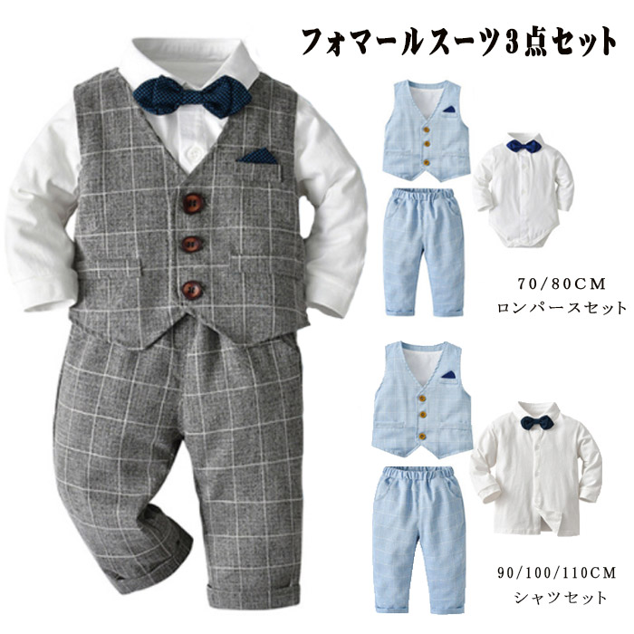 フォーマルスーツ キッズスーツ 子供スーツセット フォーマルロンパース かっこいい オーバーオール 衣装 ベビー服 出産祝い 結婚式 お宮参り70-130cm 七五三 初節句入園式