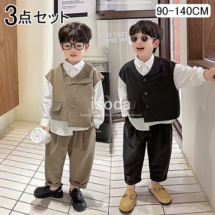 3点セット 卒業式 スーツ ベスト シャツ パンツ 入学式 入園式 卒業式 七五三 格好良くて着心地にこだわったスーツ 発表会 幼稚園 90-140cm